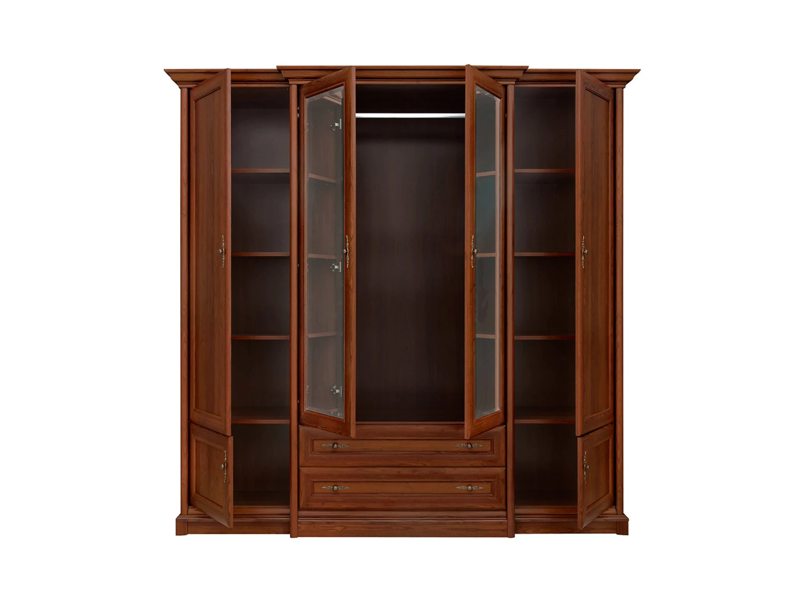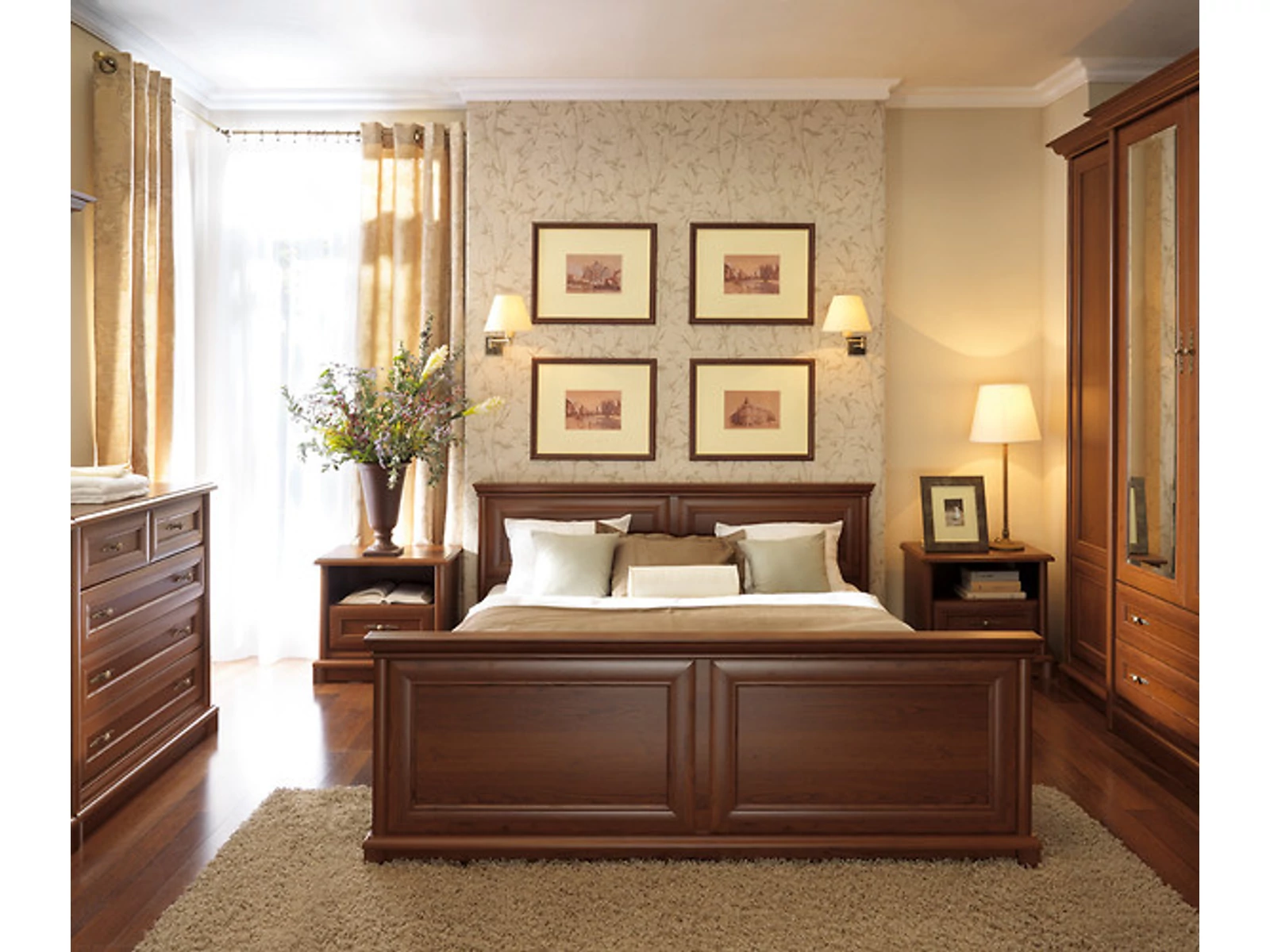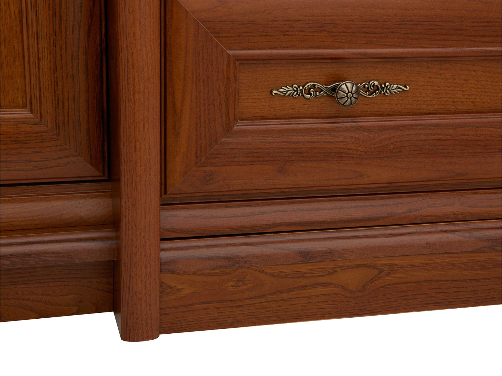 A bútorok klasszikus jellegét a keretes frontok, a bútor síkjától előrelógó tetőlap, a hagyományos színvilág és a stílusos gombfogantyúk határozzák meg.