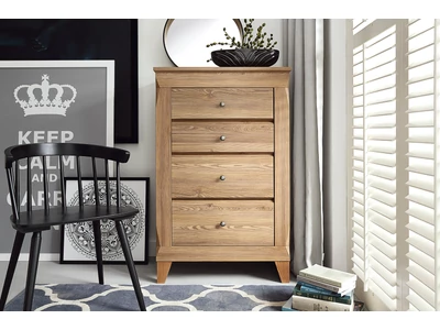A kollekció elemei a vörösfenyő színének melegségét hangsúlyozzák. Az egyszerű formák mellett a stílusos kiegészítők és magas lábak jellemzik, ezzel is egyedi karakterét erősítve. A lábak íves kialakításának köszönhetően megbontják a bútorok merev keretét és vonzzák a szemet. Nemcsak a visszafogottságot hangsúlyozzák a kecses gomb alakú fogantyúk, hanem kényelmes hozzáférést biztosítanak, akár egy ékszerdoboz.