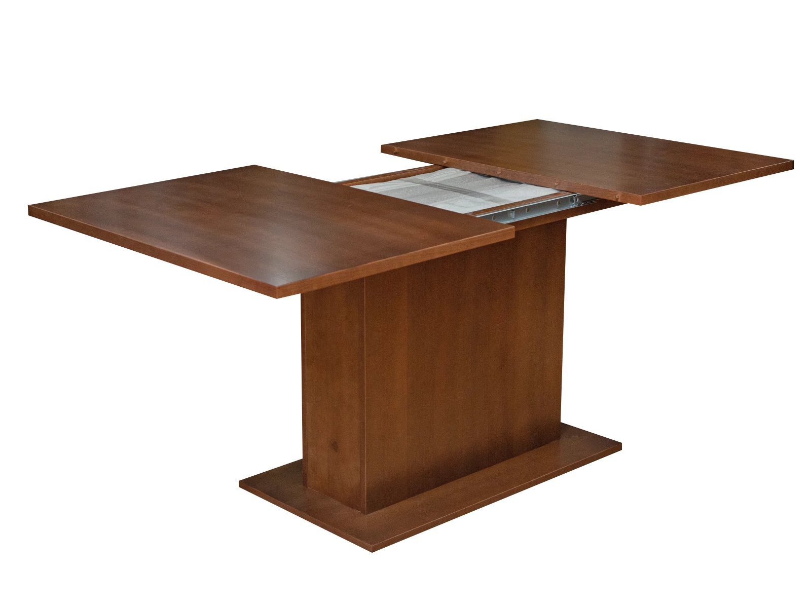 Bővíthető étkezőasztal wenge színben. Középlábas.