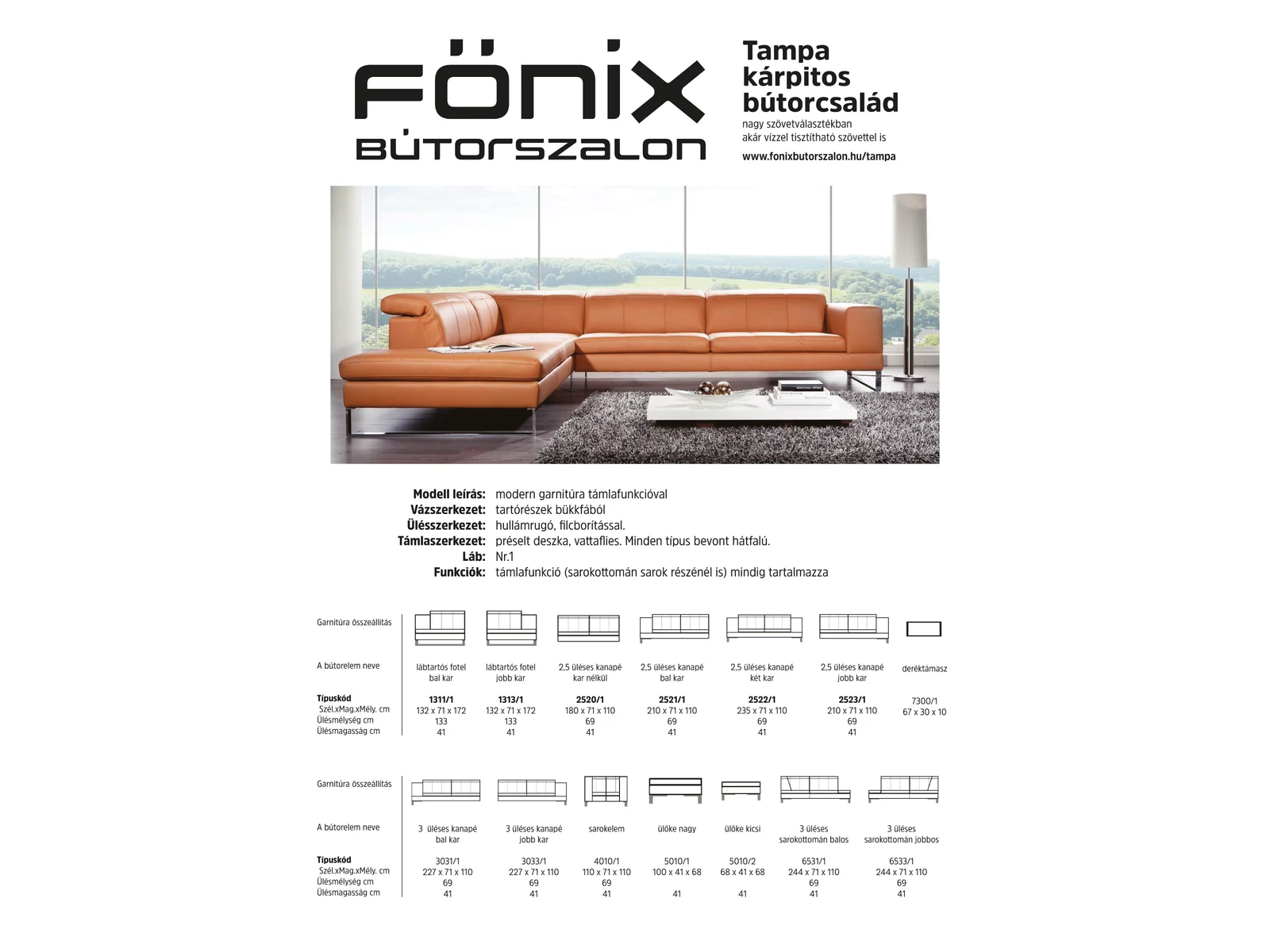 | Funkciók | támlafunkció (sarokottomán sarok részénél is) mindig tartalmazza |